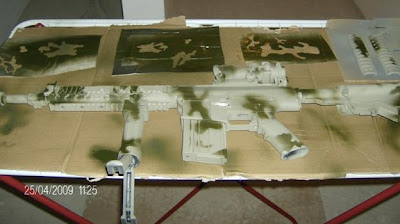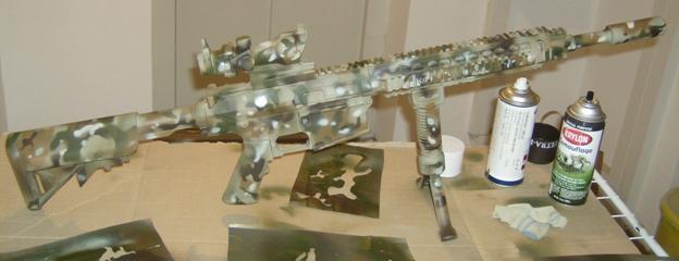 M-a atras dintotdeauna ideea unei replici vopsite in camuflaj, dupa ce am vazut cateva modele pe teren, m-am decis sa incerc si eu. Am combinat ideea de a vopsi replica cu alt proiect de-al meu, si anume de a-mi construi o platforma DMR care sa se supuna regulamentului SAD BUNNEH 1.0. Am ales in acest sens un SR 25 K. Ideea initiala era sa vopsesc replica WOODLAND, in ultimul moment insa m-am razgandit si am decis sa incerc o schema de MULTICAM, acesta fiind si uniforma oficiala a echipei din care fac parte.